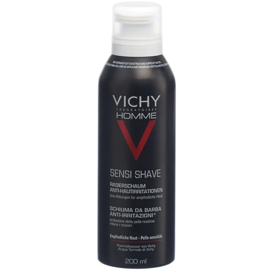 VICHY Homme shaving foam anti skin irritation 200 ml Protects and regenerates the skin The combination of calcium, vitamin Cg and salicylic acid protects your skin reliable against razor burn. It preserves the skin’s hydrolipidic film and helps To avoid friction and irritation. Your skin is protected and intensive moisturized. For men with sensitive or problem skin (ingrown beard hairs, Pimples after shaving…) that cause redness or irritation after shaving tends. Application: Apply to damp, previously cleansed facial skin. “
